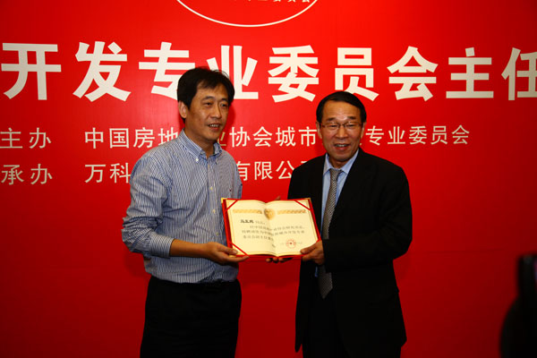 中国房地产业协会会长刘志峰为马亚鹏董事长颁发聘书