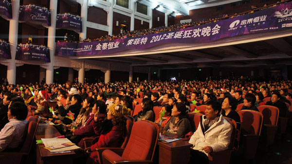 2012年12月24日、25日,金泰恒业携手西安雅高人民大厦在索菲特人民大剧院为业主及合作伙伴奉上了两场精彩纷呈的圣诞盛宴。来自金泰•丝路花城、金泰•假日花城以及金泰•新理城的业主代表及合作伙伴齐聚一堂,共度了一个温馨美妙的圣诞之夜。