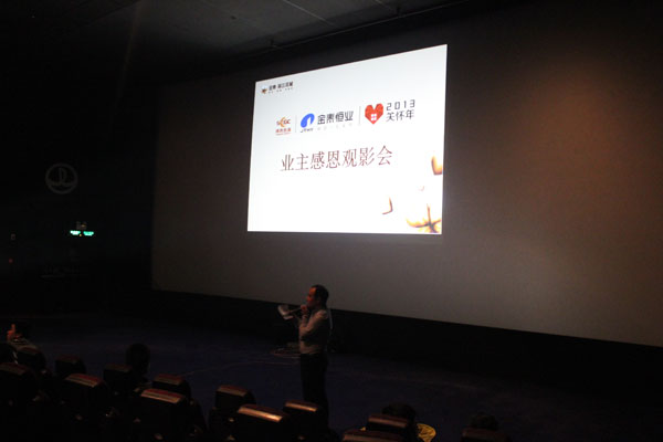 为答谢新老业主长期以来对金泰•滨江花城项目的关注和支持,汉中置业公司于11月22日20点整在汉中万达影城举行“业主感恩观影会”活动,吸引了众多业主的参与,在寒冬时节给业主们送去了温暖的关怀。