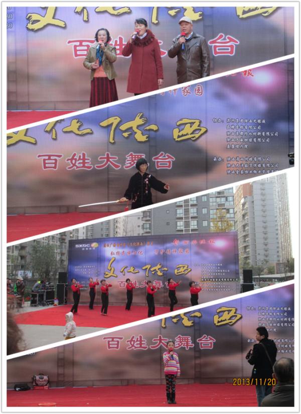 11月20日至24日,金泰•假日花城物业服务中心携手陕西广播电视台《文化陕西》栏目组在小区L运动大道,开展了以弘扬民族文化、守护精神家园、传承中华精神文明为主题的“把舞台还给百姓”文艺汇演活动,“百姓演,百姓看”,吸引了小区众多业主的参与,丰富了小区业主的业余文化生活。