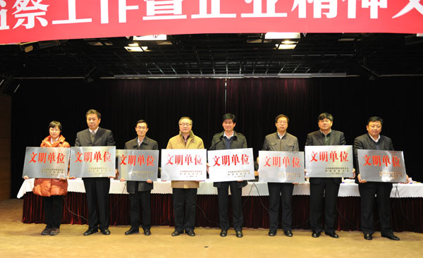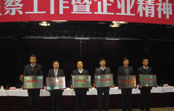 2014年陕西省国资委系统纪检监察工作暨企业精神文明及文化建设表彰会议2月18日在西安召开。会议学习传达贯彻了中纪委十八届三次全会和省纪委十二届三次全会精神,安排部署了2014年反腐倡廉任务,签订了2014年党风廉政建设责任书,并命名和表彰了一批企业精神文明建设单位和企业文化示范单位,省国资委领导、各市(区)国资监管机构纪委书记、省国资委监管企业党委书记、纪委书记、分管宣传思想文化工作的领导、监察室主任及受表彰的精神文明建设单位和企业文化示范单位负责同志等200多人参加了大会。我公司荣获了省国资委系统文明单位和企业文化示范单位两项殊荣。公司党委书记雷勤代表公司参会并登台领奖。