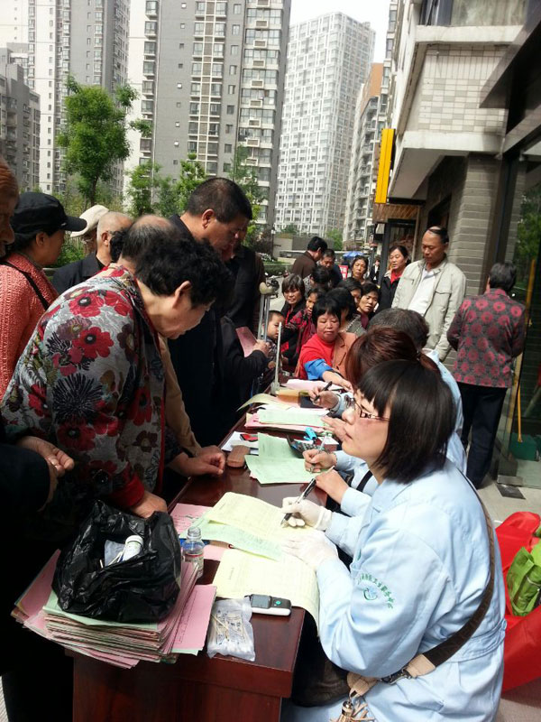 4月28日上午,近百名业主早早来到义诊现场,在物业服务中心工作人员的疏导下,义诊活动井然有序进行。在义诊过程中,医生们了解到大部分业主从来没有量过血压、测过血糖,对自己身患高血压或者糖尿病浑然不知,而部分患者在确诊患病后并没有长期服药,亦没有定期监测及调整用药,为诸多高血压和糖尿病的并发症埋下了隐患。针对这一情况,电子城社区卫生服务中心的医生们耐心地为业主进行了专业指导,并为业主们讲解了治疗和预防措施,让广大业主树立起了战胜疾病的信心。