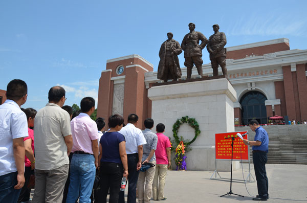 在陕甘边革命根据地照金纪念馆前,首先举行了敬献花篮仪式,全体党员在公司董事长马亚鹏、党委书记雷勤的带领下,向纪念馆雕像敬献花篮并三鞠躬。党委书记雷勤做了活动主题讲话,指出开展革命传统教育,是公司党建工作多年来的优良传统,今天的活动,立足缅怀革命先烈的光辉业绩,继承和发扬革命传统,重走红军路再读革命史,弘扬照金精神。他说,站在当年英雄们流血捍卫的地方,让我们感念革命前辈理想之高、意志之坚、革命之苦……,以照金精神为镜,坚定理想信念,立足于党的十八大提出的党要管党的新要求,扎实开展好群众路线教育实践活动,认真查摆自身存在的“四风”问题,密切联系群众,以人民利益高于一切为宗旨,努力改进工作作风,把落脚点放在提高在本职岗位不断提高为民服务的能力上,用自己的实际行动履行入党誓词,为推动企业健康稳定发展做出更大的贡献。