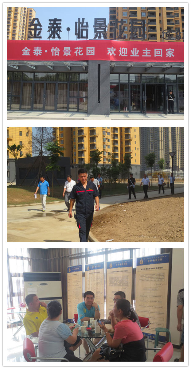 7月15日,一走进金泰•怡景花园1.1期入口处,首先映入眼帘的是欢迎业主回家的横幅。1-6#楼单元门外,所有马路都已清洗一尘不染,为给业主一个整洁、温馨的现场,直属项目公司对于在交房工作中所遇到的困难进行了充分的估量和准备。纵观1-6#楼整个入住手续办理的设置,可以感受到金泰恒业在细节之处的人性关怀。考虑到业主等候时间过长,公司把业主收放分为16天,每天安排交付40套左右。这样不仅让业主有充裕的时间看房、验房,又不会让业主在烈日下奔波、等候。同时,我们以流水线的业务办理流程,为业主收房达到了方便、快速、便捷。我们以热情周到的服务为目标,在过程中有任何问题,我们总是尽职尽责的记录以求达到最佳的效果,尽自己所能给业主一个满意的答复。为了使业主能够满意而归,现场员工常错过吃饭时间,尽心尽力地为业主服务,整个进户的过程中,大家都时刻牢记公司宗旨,把服务业主放在第一位,只要还有业主来,就放弃休息时间为他服务到底,即使身体非常疲惫,第二天依然精神奕奕的继续工作,发挥着金泰人踏实苦干的工作作风。