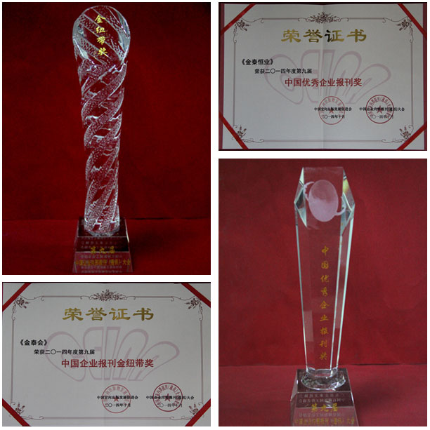 11月2日,由中国企业内部报刊(通讯)大会秘书处承办的“第九届中国企业内部报刊(通讯)大会”在河北承德成功举办,公司内刊《金泰会》刊物和《金泰恒业》小报经大会专家组一致评定分别被授予“第九届中国企业内部报刊金纽带奖”和“第九届中国优秀企业报刊奖”。