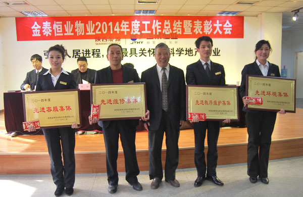 会议由刘冰副总主持。会上,物业公司常务副总张希爱作了题为《开拓思路,强化管理,为持续提升公司物业服务水平而努力》的工作报告,报告从三项目标责任制完成情况和年度重点工作任务完成情况和去年工作中的主要问题对2014年度工作进行了回顾,并提出了2015年公司的发展思路和具体落实措施。大会还对2014年度的29名先进个人和4个公司先进集体进行了奖励。