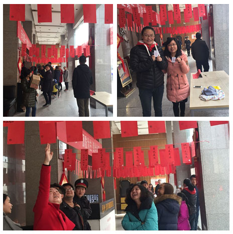 2月22日一大早,金泰•财富中心大厦一楼大厅内已将100余条谜题布置到位,红红的中国结、悬挂整齐的谜题,整个大厅都洋溢着喜庆气氛。上午10:00活动正式开始。在现场工作人员的引导下业主按照公示的活动规则和步骤有序参与。现场气氛热烈、秩序井然,活动持续到15:00 。本次“猜灯谜”活动的成功举办,增进了公司和大厦业主、业主和业主间的沟通交流,拉近了彼此间的距离,加深了相互了解,为公司今后做好各项服务工作打下了基础。