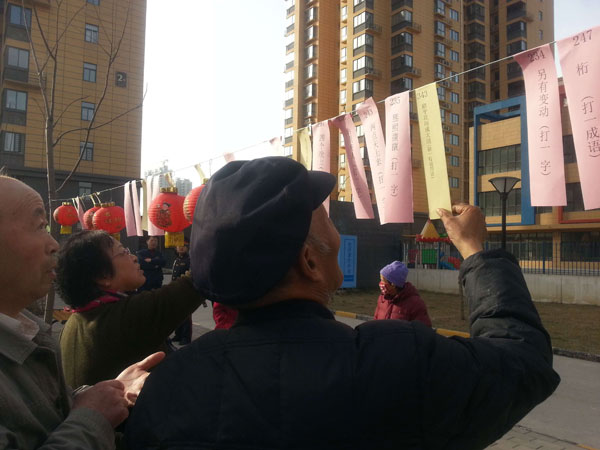 2月22日,热闹的元宵节传统庆祝活动在金泰•新理城小区物业服务中心门口隆重举行。此次猜灯谜活动从上午10点就开始了现场的布置,维修部的人员挂横幅,拉彩旗,客服人员也在现场不断穿梭着,挂上了一条条喜气洋洋的红色灯谜,整个活动现场都在有条不紊的进行中布置着,大伙们一个个也都忙的热火朝天。下午两点活动正式开始,此次活动持续到17点圆满结束。活动中,现场的工作人员看到未猜出灯谜业主们对着一个个灯谜开动脑筋、苦思冥想,也上前一同出谋划策。猜出灯谜的业主们领取到自己满意的礼品时,每个人脸上都露出了开心的笑容。整个活动都在一片和谐的氛围中,有序地进行着。