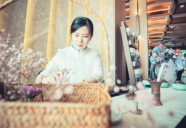 除了沙盘讲解与入室品鉴,金泰·锦府营销中心开放当日更营造了一个古朴典雅与现代风尚完美融合的新意境。一首古筝曲,满园传诗意;曲水流觞处,遍地是花香;中式风骨韵,润物细无声。一条蜿蜒的水景温柔的载着这五颜六色的花瓣将琴棋书画茶酒花送往心中的远方,向众人展现最淋漓尽致的美。另有桃花酿、桂花酥、英俊帅气调酒师;调香师,茶艺师,围棋美女见真章;书法家,国画家,字画之中有真谛……