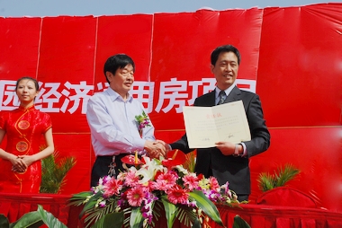 在开工典礼上,承建单位陕投集团全资子公司陕西金泰恒业房地产有限公司进行了“打造安居样板工程”宣誓,并与西安市住房保障和房屋管理局签订“政府放心,百姓安心”工程责任状。