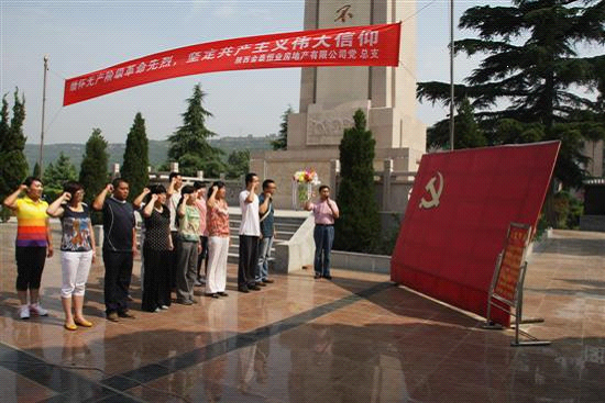 在烈士陵园扶眉战役烈士纪念碑前,公司总支委员、工会主席张高明主持仪式,向革命烈士敬献花篮、表达哀思。他说,今天是我们伟大的中国共产党成立90周年的纪念日,在陕西省爱国主义教育和国防教育基地“扶眉战役纪念馆”,缅怀在62年前扶眉战役中浴血奋战,为新中国解放事业献出了宝贵生命的无数先烈,重温党为中华民族伟大复兴做出的卓越贡献,对于我们继承和发扬革命传统,永葆共产党员的先进性具有十分重要的意义。随后,在物业公司党支部书记郭本全的带领下,杨明丽等14名预备党员在烈士纪念碑前面对党旗庄严宣誓,为共产主义奋斗终身。 进入扶眉战役纪念馆,丰富的文字材料和弥足珍贵的历史图片、烈士遗物,使大家仿佛置身于战火纷飞、硝烟弥漫的战争年代,感受到了人民解放军浴血奋战、视死如归的英雄气概;看到了后方群众千里驰援、踊跃支前的感人场面;看到了先烈们为了祖国解放、人民自由而抛头颅、洒热血的高风亮节。这些中华民族的优秀儿女用年轻的生命谱写了一曲曲壮丽的人生赞歌,也用血与火绘就了一幅救国救民、可歌可泣的历史画卷,此次执行更加坚定了大家“没有共产党就没有新中国”的伟大真理和共产主义信念。