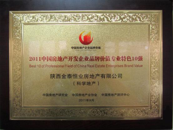 2011中国房地产品牌价值测评成果发布会暨房地产品牌发展高峰论坛9月8日在北京举行。我司荣登“2011中国房地产开发企业品牌价值成长性10强”和“2011中国房地产开发企业品牌价值专业特色10强”行列,这也是我司继获得“首届中国责任地产top50强”之后再次以品牌优势斩获的奖项。
