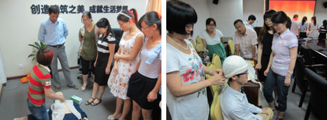 活动中,培训老师从心肺复苏、意外伤害(如溺水、触电)、创伤的早期救治、心脏病突发的处理等方面进行了详细的理论讲解,特别对建筑施工中常见事故伤害的处置,如胸外心脏按压、人工呼吸、脊椎固定、骨折固定、止血包扎和伤员搬运等还进行了详细操作演示。培训过程中,参训人员还在培训老师的指导下对模拟伤员进行了心脏按压、人工呼吸、止血、包扎、固定的实践操作,在理性认识的同时加深了感性认识,有效的增强的培训的学习效果。培训结束后,培训老师对所有参训人员发放了“急救知识试题”,并要求参训人员进行作答,对参加此次培训并答题成绩合格人员,西安市急救中心将颁发《公共现场急救技能培训合格证书》。