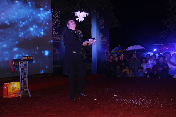 活动当日,最激动人心的自然是精彩绝伦的闭幕式晚会。著名主持人石头、本土最佳摇滚乐队黑撒乐队以及众多本土艺人为现场观众奉献了一场视听盛宴,各具特色的风格演艺,让整台晚会高潮不断。动感水鼓舞震撼开场,激荡人心,杂技演员的表演惊险刺激,赚足了眼球,神奇魔术师更是带着观众进行了一次奇幻之旅。压轴登场的黑撒乐队为丝路花城的朋友们献上了精彩的演出,陕西方言说唱音乐铿锵有力,唱出了每个人心中对这片土地的深深眷恋,唱出了西北人骨子里的不灭秦魂。