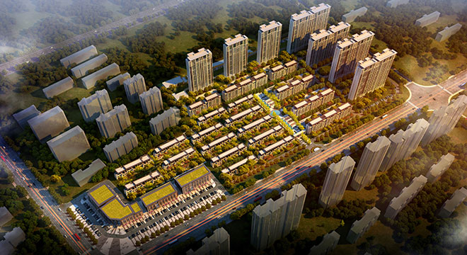 本项目占地174.6亩,总建筑面积29.58万㎡,其中地上建筑面积22.78万㎡,地下建筑面积6.8万㎡。地上建筑面积中住宅20.25万㎡,商业1.98万㎡。