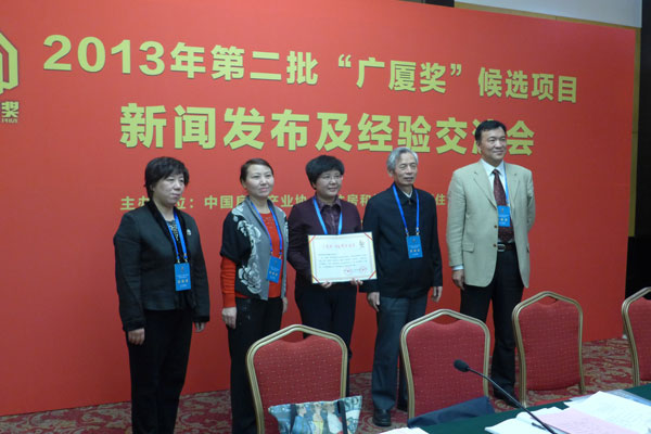 12月27日,中国房地产业协会与住房和城乡建设部住宅产业化促进中心2013年第二批“广厦奖”候选项目新闻发布会在北京举行。我司金泰•新理城项目1.1期获得“广厦奖“候选项目(本次“广厦奖”候选项目仅9个)。