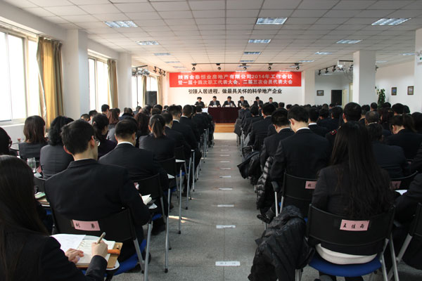元月27日,陕西金泰恒业房地产有限公司2014年工作会议暨一届十四次职工代表大会、二届三次会员代表大会召开,公司领导班子、本部及各控股公司中层以上管理人员、外派人员、职工代表、工会会员代表共计132人参加了会议。会议分别听取审议了张高明主席作的2013年工会工作报告、赵利捷总经理代表公司经营班子作的题为《转变作风求实效 凝心聚力谋发展 为完成全年目标任务而共同奋斗》的工作报告。《报告》从市场营销、项目建设、集团化管控、财务管理、品牌建设、物业管理、安全生产、党建工会八个方面全面总结了公司2013年工作,客观分析了当前最新形势、公司发展的现状、存在的问题和不足,确立了2014年“提速发展年”和“管理提升年”的两大主题,明确了2014年工作思路和完成任务的十一项保证措施。王雅萍副总下达了2014年重点工作计划,党委书记雷勤传达了集团公司2014年工作会议精神,分别签订了《2014年度资产经营与项目建设目标责任书》、《2014年度党风廉政建设责任书》、《2014年度安全生产责任书》,表彰了先进。