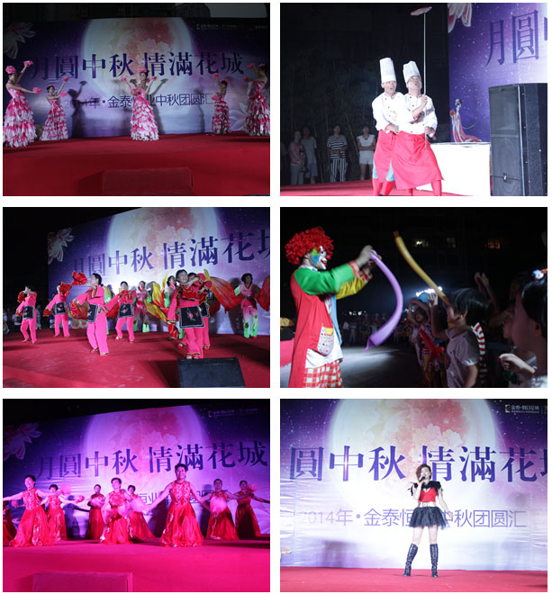 晚上19点在沙滩广场上演了一场精彩绝伦的中秋晚会,除了幽默风趣的小丑编气球、沁人心扉的歌曲演唱,还有惊心动魄的杂技表演、假日花城业主们精湛的舞蹈表演等都是整个活动的主要看点。“在此次活动中,我们甄选出及具影响力的演出团体,打造了一场无与伦比的中秋盛宴。一是表示对业主的感恩之心,以薄礼回报。同时,在这中秋佳节给业主提供欢聚一堂,感受邻里和谐友好的氛围。二是我们老带新政策启动,更大的让利于业主。”金泰恒业负责人如是说。