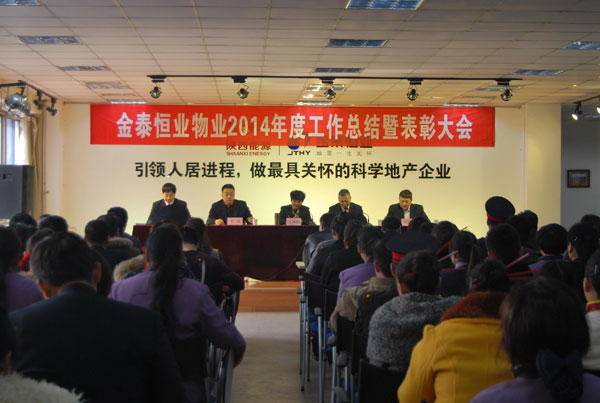 2月8日下午,物业公司在房地产公司四楼多媒体会议室召开了2014年度工作总结暨先进表彰大会,物业公司王雅萍董事长,物业公司领导、物业公司本部全体员工和各物业服务中心部门经理以上人员,及员工代表共180余人参加了本次大会。