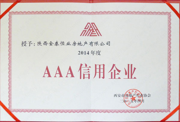 据悉,本次西安房协的星级企业评选活动在200余家会员企业中进行,最终包括我公司在内的9家企业,凭借诚信经营的理念和良好的市场形象,荣获“2014年度西安市房地产3A级企业”称号。另有11家企业荣获“2014年度西安市房地产2A级企业”称号。