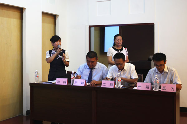 6月24日晚19时,泰盛恒地产“加强安全法治,保障安全生产”辩论赛在公司六楼会议室举行。由各部门、各单位共同组成的4个小组参赛,地产公司全员、启翔公司全员、物业公司主管以上人员观看了辩论赛。