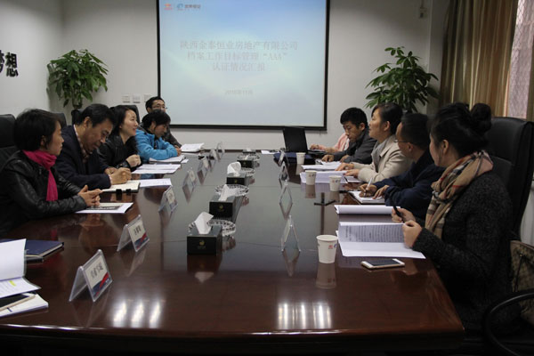 认证会由陕西省档案局王凯处长主持。曹霞总监从档案工作管理机制、档案业务建设、档案信息化建设、档案开发利用四个方面全面汇报了我司档案管理工作情况。省档案局王凯处长代表验收组,对检查验收工作做总结讲话,她充分肯定了我司在档案管理工作中取得的成绩,认为我司档案管理工作得到集团公司的重视,领导的支持以及档案管理人员共同努力,无论是档案业务基础还是编研都做了大量工作,取得很大成效,走在了其它企业的前列,不仅在房地产行业名列前茅,同时,也是企业档案工作的典范。王凯处长建议把我司档案工作经验进行总结,并向省里其它企业推广学习。同时,对我司的档案工作提出三点要求:一是进一步加强档案信息化建设。档案工作信息化要与企业信息化进行融合,协同发展,实现协同办公系统与档案管理系统电子文件存档的自动链接。二是在做好集团本部档案工作的同时,加强对下属公司档案工作的监督、检查和指导,实现共同发展和提高。三是要重视对办公自动化文件的管理和备份,确保档案的信息安全和实体安全。