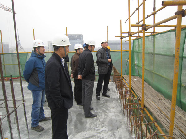 集团检查组到达后项目后,未做停顿直赴施工现场,在公司、项目有关领导和人员陪同下,分别前往项目一、二期检查高空作业临边防护、消防器材、安全通道、施工照明、深基坑边坡支护、临边围护等,并登上70余米高的一期南塔楼施工作业面,俯瞰项目全景,了解整个项目建设情况。