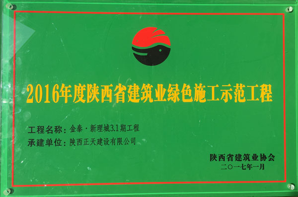 近日,在西安市召开的2017年度陕西省建筑业企业创精品工程经验交流会上,金泰•新理城项目3.1期工程获得了陕西省建筑协会评选授予的“2016年度陕西省绿色施工示范工程”荣誉称号。