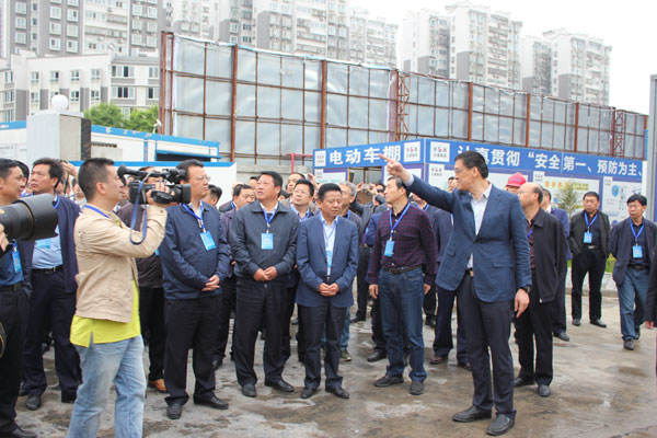 5月5日上午,由汉中市大气污染防治联防联控领导小组办公室牵头,金泰恒业汉中置业公司协办的“汉中市“铁腕治霾•保卫蓝天” 扬尘治理雷霆专项行动现场观摩会”在我公司金泰•滨江花城二期项目施工现场隆重举行。汉中市市委常委、常务副市长李九红带领市政府、各县区主管城建县长、住管局、建规局、环保局等单位和市直部门领导共计200余人参加了本次现场观摩,金泰恒业汉中置业总经理吕红雨和陕建五建集团金泰•滨江花城项目负责人刘宇博陪同观摩,并现场介绍了项目在扬尘治理、安全文明施工等方面的做法和经验。