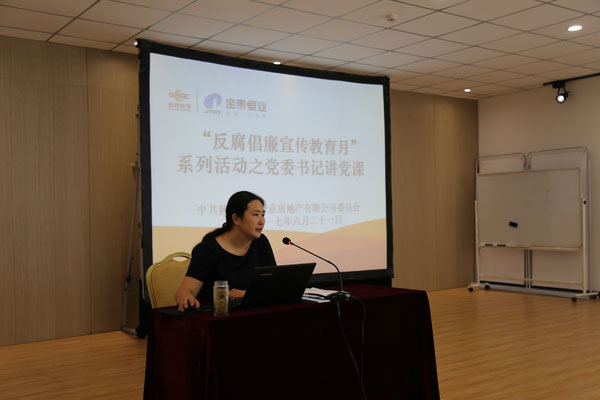 此次活动是根据公司党委《关于开展反腐倡廉宣传教育月活动的通知》(陕金房党字〔2017〕18号)精神,通过开展“五个一”( 开展一次专题中心组学习、党委书记讲一次廉政党课;组织一次警示教育;开展一次“四风”自查自纠;举办一次专题讲座),推动公司党风廉政建设,促进廉洁文化进企业的内容之一。