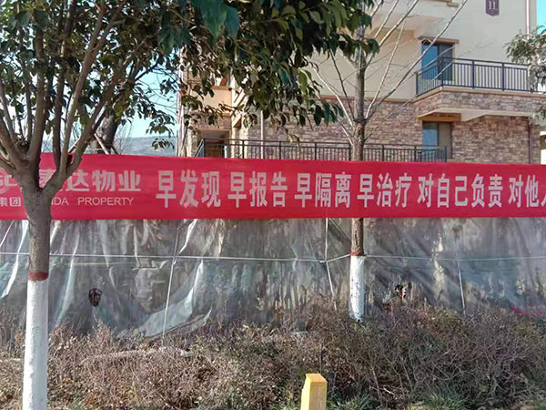 线下在社区内挂横幅和张贴温馨提示