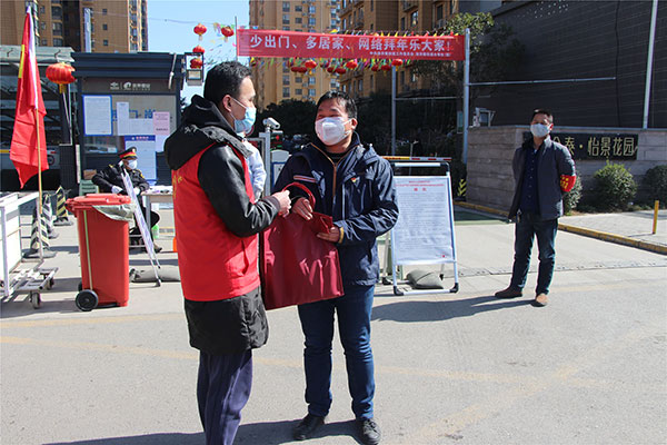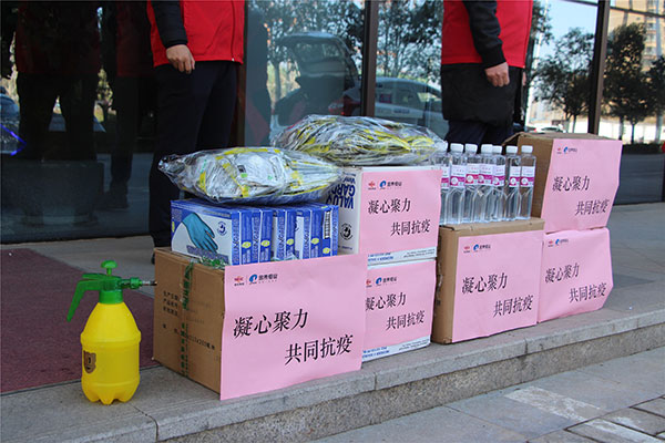 为了支援坚守一线的物业服务人员,给予他们切实有效的帮助,在金泰恒业公司党委、疫情防控工作领导小组的指导下,2月13日,金泰恒业的志愿者们开始多方联系,在最短时间内购买到了一批n95口罩和其他防疫物资。2月17日,志愿者们早早在公司集合,将购买到的120个n95口罩、80瓶酒精和300双一次性手套分批整装,送往公司所属各小区防疫一线。出发前,他们先将一批防疫物资送到了坚持在公司值班的物业服务人员,随后驱车先后前往金泰·新理城、金泰·假日花城、金泰·怡景花园、金泰·经开花城、秦达·创业公寓和秦达·明能苑等小区,把金泰恒业的温暖与关怀伴随着防疫物资送到了奋斗在一线的物业服务人员手中。