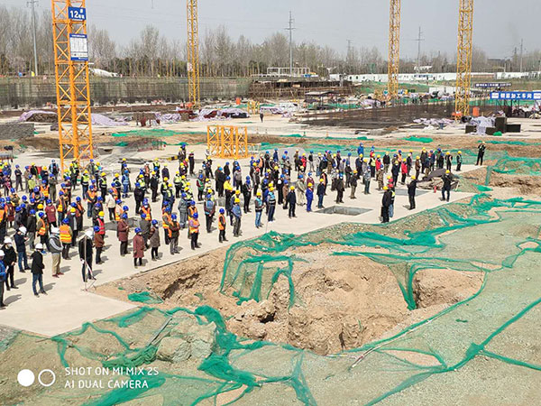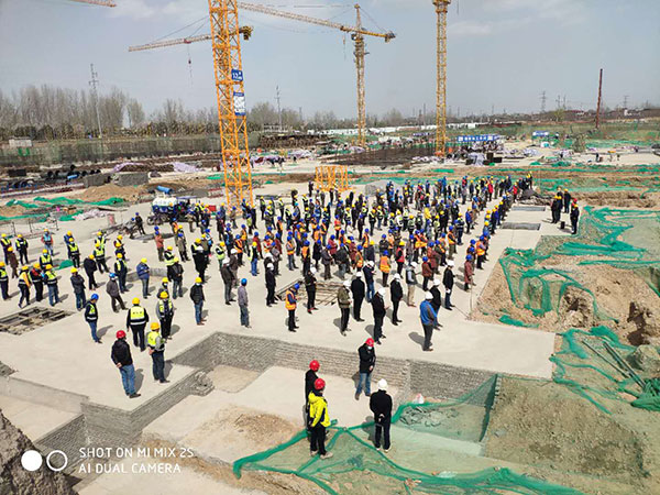 2020年3月13日下午,金泰·东郡项目部组织参建单位管理人员和劳务人员召开全面复工动员大会。动员大会主要从防疫宣贯,安全宣贯,环保宣贯,健康复产等方面对所有参建人员进行总体交底,动员会共有管理人员142人,劳务人员300人,共计442人参加。此次动员大会的召开标志着金泰·东郡项目已经全面有序复工复产。