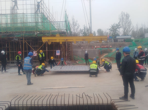 4月1日下午,在陕投远大技术人员指导下,金泰·东郡项目第一批PC构件进场并完成卸车,进场构件为1#地块26号楼二层叠合板共计35块。为确保第一批PC构件顺利进场,东郡项目部在前期生产过程中组织监理单位、总承包单位对PC构件生产过程进行了现场监督检查,对发现的问题提出意见建议,对构件在运输、进场过程中需注意的问题提出要求。