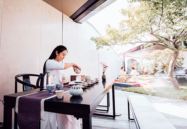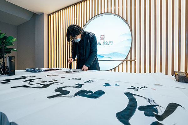 除了沙盘讲解与入室品鉴,金泰·锦府营销中心开放当日更营造了一个古朴典雅与现代风尚完美融合的新意境。一首古筝曲,满园传诗意;曲水流觞处,遍地是花香;中式风骨韵,润物细无声。一条蜿蜒的水景温柔的载着这五颜六色的花瓣将琴棋书画茶酒花送往心中的远方,向众人展现最淋漓尽致的美。另有桃花酿、桂花酥、英俊帅气调酒师;调香师,茶艺师,围棋美女见真章;书法家,国画家,字画之中有真谛……