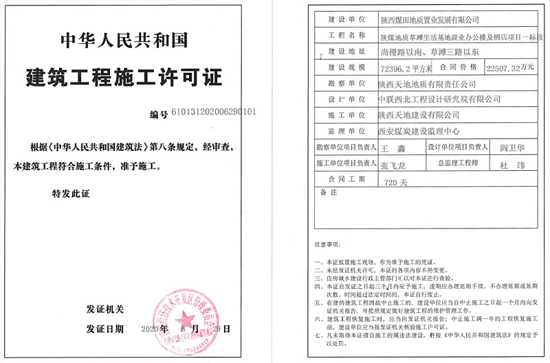 6月29日,陕煤地质草滩生活基地商业办公楼及酒店项目一标段顺利取得《建筑工程施工许可证》。 该项目位于西安市经开区尚稷路以南,草滩三路以东,总体规划建设1栋酒店及3栋写字楼,本次一标段建设内容包括1#酒店、1-A#商业裙房、地下车库,总建筑面积72396.2㎡。