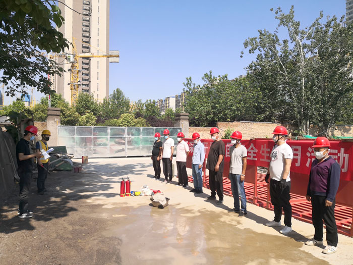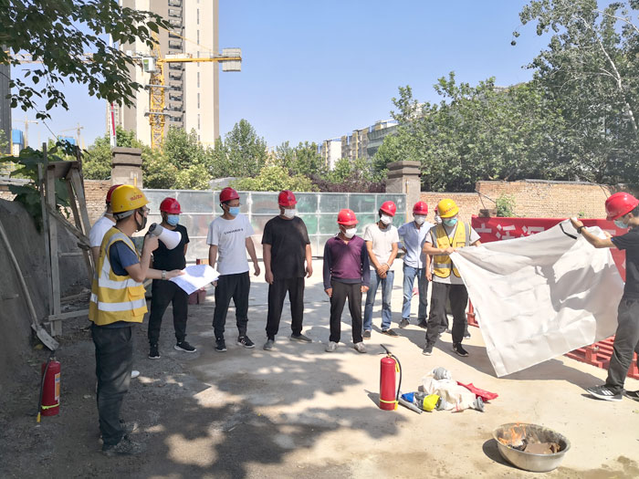 6月18日,贞观悦府项目组织土方单位、考古发掘单位及支护单位在贞观悦府项目开展消防演练活动。活动内容由消防知识讲座、消防演练三部分内容。安全员首先讲解了火灾现场的应急处置方案,发生火灾时如何采取应急措施及干粉灭火器和灭火毯的灭火原理、注意事项,演示了灭火器、消防水带基本操作方法。随后参演人员进行了模拟灭火演习,熟悉了步骤方法,迅速将演练火堆迅速扑灭。