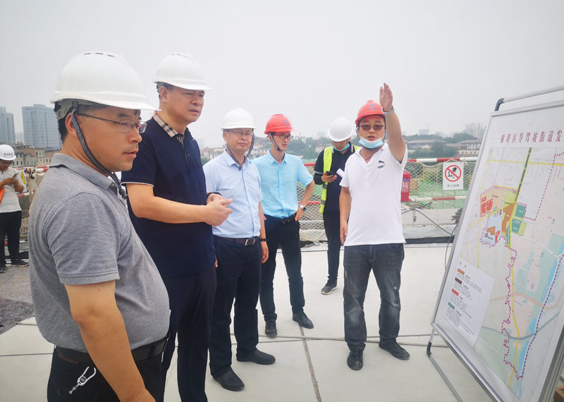 郭书记一行首先来到正在建设的会所屋面听取项目规划、产品定位、开发计划及投资计划的介绍,随后前往施工现场进行参观指导。郭书记对项目建设标准化管理、规范化施工给与了高度评价,同时亲切嘱咐现场施工要注意做好防暑降温,常态化疫情防控工作,保证安全生产。最后,郭书记对制约项目的一期管道迁移及文物影响评估问题推进情况进行了深入了解,要求街办要主动协调,确保项目顺利推进。