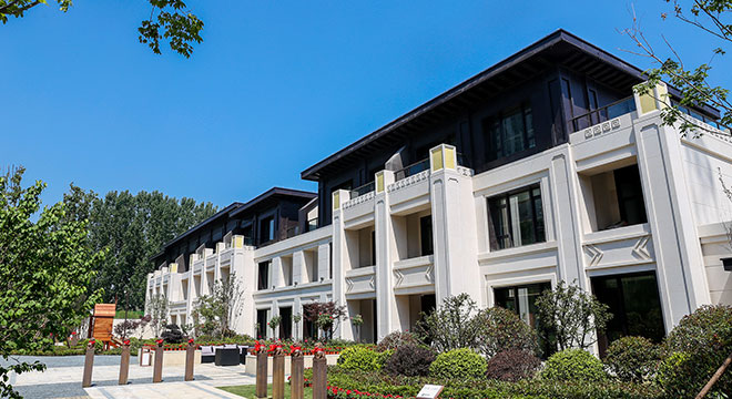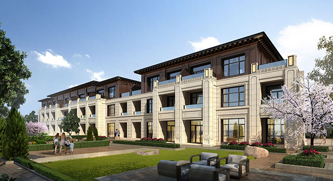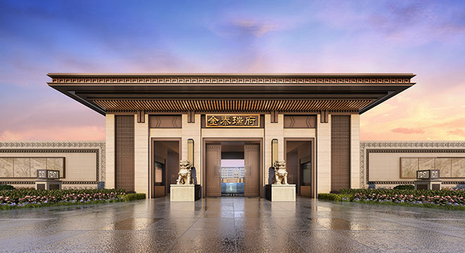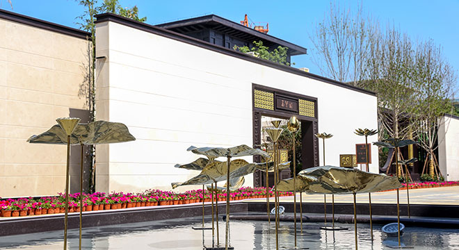 项目景观园林为新中式风格,采用中国传统的皇家造园方式,依照 “天人合一”的设计手法,采取四进制庭院的设计理念,打造极具仪式感的归家礼序。