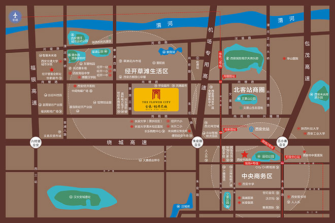 项目位于西安市经开区草滩三路,总占地100亩,一期规划用地53.6亩,由8栋低密简欧建筑组成,二期由星级酒店、高端写字楼构成。项目周边路网通达,教育资源丰富。